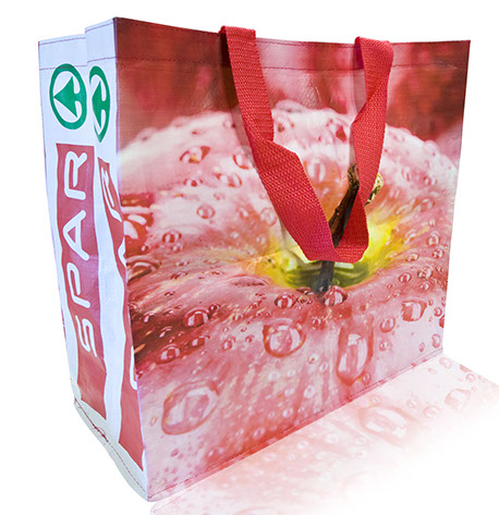 Are you looking for a full color bag? Are you looking for a tote that stands out? This is our large eco-friendly laminated. Our green bags are designed and quality tested to last. Our totes provide a larger print area for more exposure. Non Woven Polypropylene & recyclable. This reusable grocery tote is strong and holds up to 40 lbs.