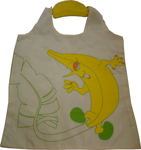 We are proud to introduce our fruit & vegetable collection. This neoprene pouch shaped like a banana has a reusable tote inside and folds up into a pouch. The neoprene pouch has a zipper for easy closure. The bag is made of polyester, a durable and washable fabric. This tote has a spacious main compartment for all of your shopping needs.