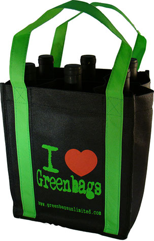 Our green bags are designed and quality tested to last longer. Get more exposure. This is our 4 bottle wine tote bag made of quality 100 gsm. non woven polypropylene & recyclable. Our improved handle design make carrying heavy load easy.