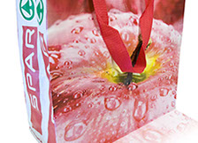 Are you looking for a full color bag? Are you looking for a tote that stands out? This is our large eco-friendly laminated. Our green bags are designed and quality tested to last. Our totes provide a larger print area for more exposure. Non Woven Polypropylene & recyclable. This reusable grocery tote is strong and holds up to 40 lbs.