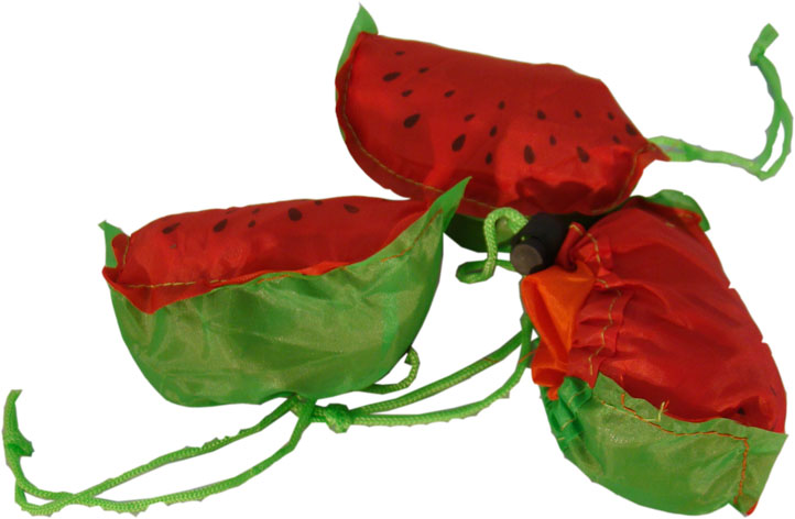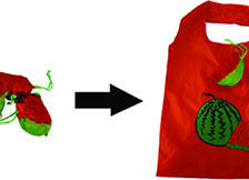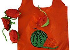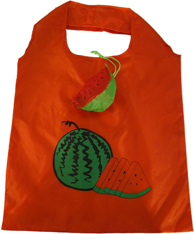 We are proud to introduce our fruits & vegetable collection. This reusable tote bag folds up into a pouch shaped like a watermelon slice. The bag is made of polyester, a durable and washable fabric. The tote has an elastic drawstring attached for easy closure. This watermelon tote has a spacious main compartment for all of your shopping needs
