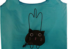 We are proud to introduce our animal collection. This reusable tote bag folds up into a pouch shaped like a cat’s face. The bag is made of polyester, a durable and washable fabric. The tote has an elastic drawstring attached for easy closure. This cat tote has a spacious main compartment for all of your shopping needs.